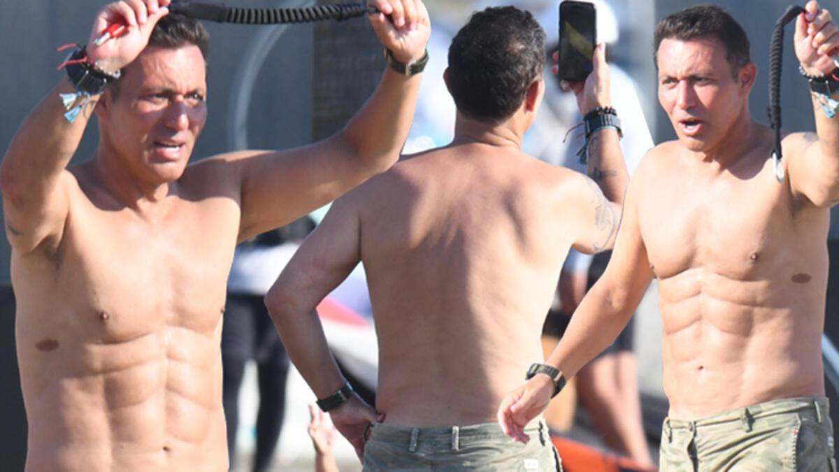 Kaslı bedeniyle dikkat çeken 53 yaşındaki ünlü müzikçi, sörf tahtası üzerinde keyifli dakikalar geçirdi.