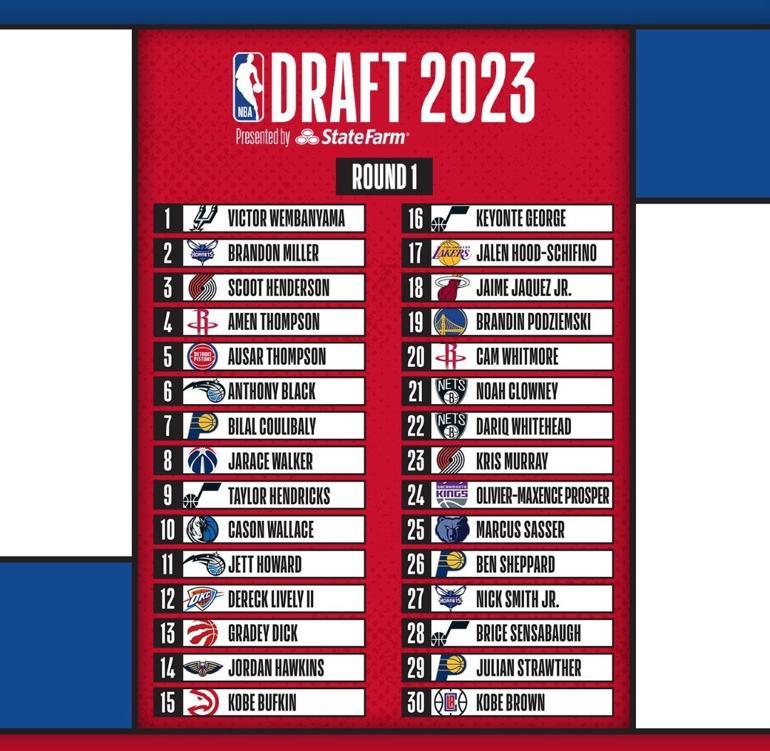 İkinci sıradan Charlotte Hornets, Brandon Miller’ı takımına dahil ederken, üçüncü sıradaki Portland Trail Blazers ise Scoot Henderson’ı seçti.