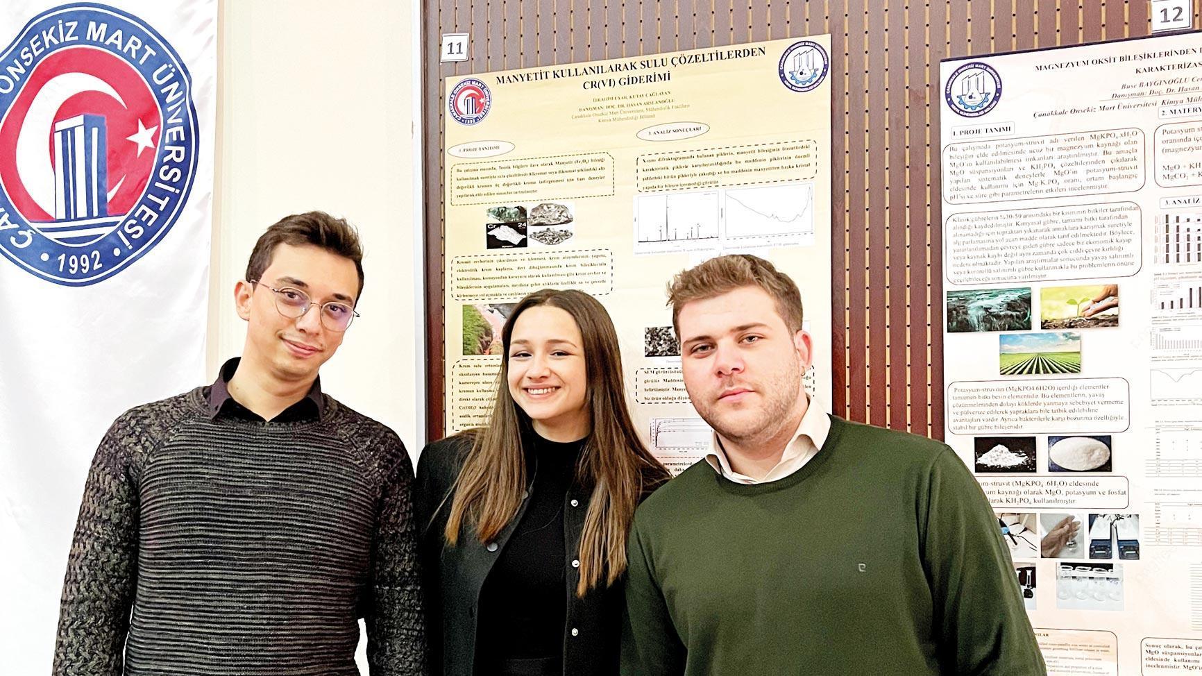 Türkiye’de yılda yaklaşık 6 milyon ton gübre üretildiğini belirten Çağlayan, şöyle devam etti: “Pazarda 8 milyon ton gübre kullanılıyor. Biz de seri üretime geçerek piyasadaki bu pastadan hisse almayı hedefliyoruz. Bu kapsamda TÜBİTAK 2242 Üniversitesi Öğrencileri Araştırma Proje Müsabakaları kapsamında ‘Potasyum Magnezyum Fosfatlı Akıllı Gübre Üretimi’ başlıklı projemiz, 511 proje ortasında finale kalmayı başardı.”