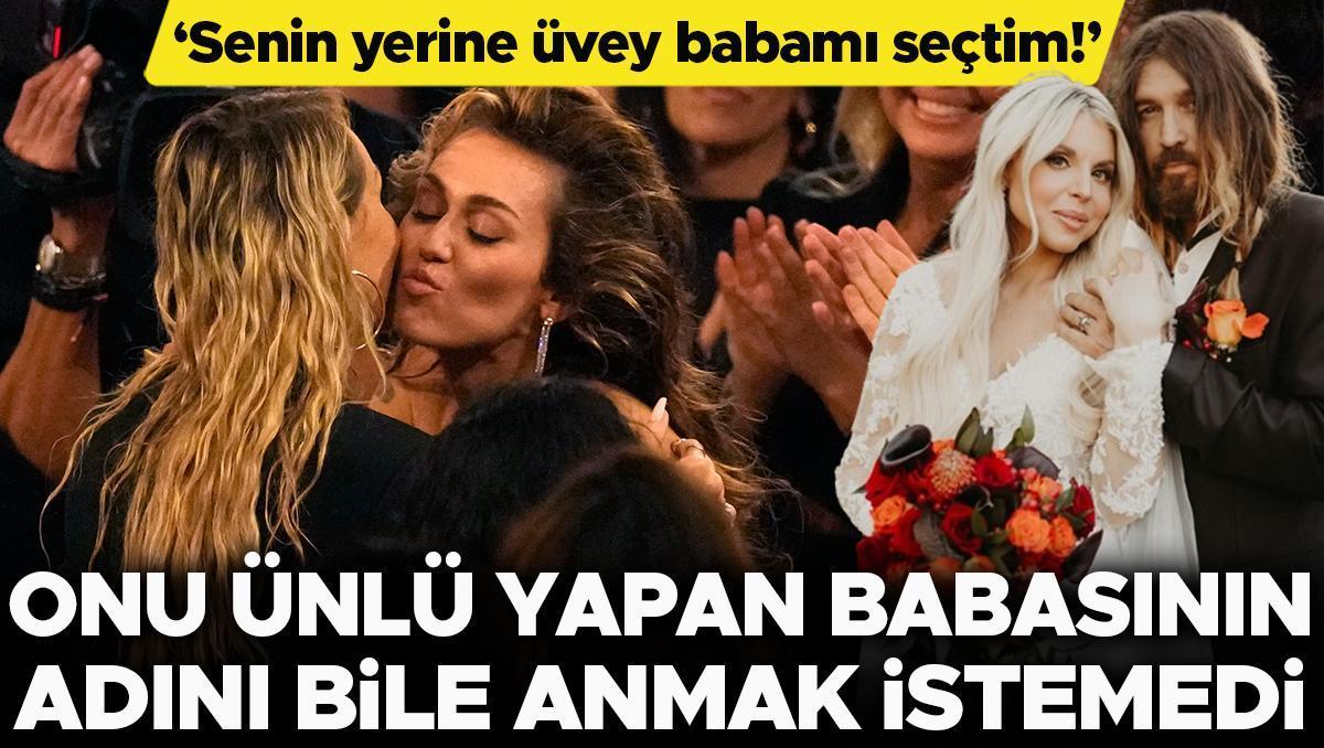 Miley Cyrus, bir manada hem ününü hem de pazar gecesi kazandığı birinci Grammy mükafatlarını borçlu olduğu, üstelik kendisi de ünlü bir müzisyen olan babasını hiçe saymış oldu. Bu şoke edici davranışın arkasında ise Billy Ray Cyrus’ın geçen yıl ekim ayında yaptığı evlilik var…