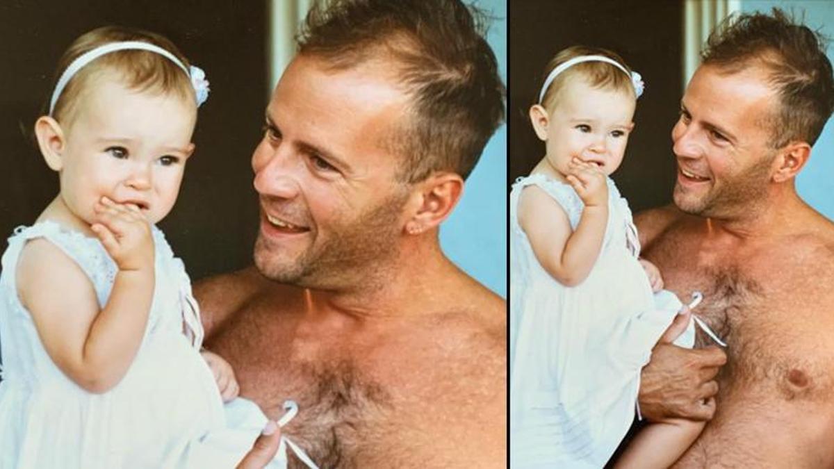 O fotoğrafta Bruce Willis şimdi gençliğinin ve mesleğinin tepe noktasında olduğu periyotta. Rumer ise şimdi bir bebek. Üzerinde beyaz elbisesiyle babasının kucağında görünen Rumer’a Willis de sevgiyle gülümsüyor.