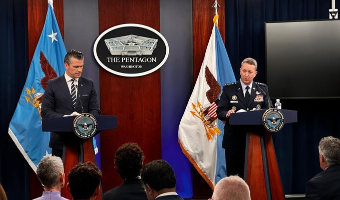 ABD Savunma Bakanı Pete Hegseth ve Genelkurmay Başkanı Dan Caine, Pentagon’da düzenledikleri basın toplantısında, İran’ın nükleer tesislerine düzenlenen saldırının detaylarını anlattı. Bakan Hegsth, hedefin sadece nükleer tesisler olduğunu ve İran halkının da, ordusunun da hedef alınmadığını söyledi. Caine de, saldırının mükemmel olduğunu ve ABD’nin en büyük B-2 operasyonunu gerçekleştirdiklerini ifade etti.