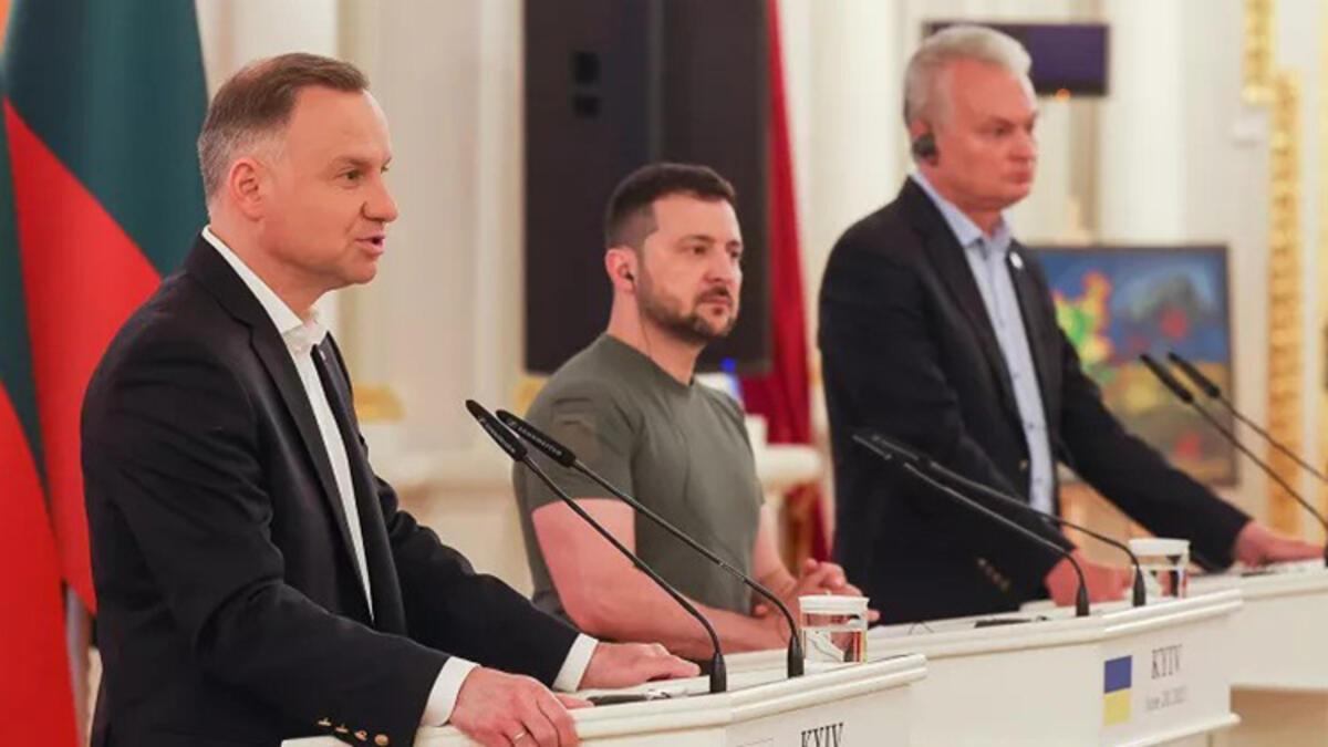 Polonya Cumhurbaşkanı Andrzej Duda, Litvanya Cumhurbaşkanı Gitanas Nauseda ile birlikte Ukrayna Anayasa Günü hasebiyle Ukrayna’nın başşehri Kiev’de Ukrayna Devlet Lideri Vladimir Zelenskiy ile bir ortaya geldi. Cephedeki son gelişmeleri, Rusya’daki Wagner isyanını ve Zaporijya Nükleer Santrali etrafındaki son durumu ele alan üç başkan, daha sonra ortak basın toplantısı düzenledi.
