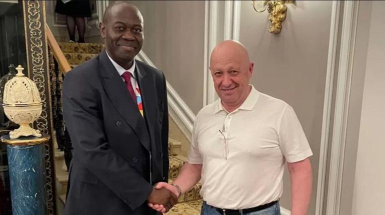 Prigojjin, geçen ay St Petersburg’da düzenlenen Afrika-Rusya tepesi sırasında Orta Afrika Cumhuriyeti’nin devlet lideri danışmanlarından Büyükelçi Freddy Mapouka ile el sıkışırken fotoğraflandı.