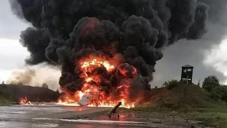 Görüntüler St Petersburg’un güneyindeki Soltsy-2 Hava Üssü’nde bir Tupolev Tu-22’yi yanarken gösteriyor. Moskova, bir insansız hava aracının hafif silahlarla vurulduğunu lakin aracın uçağa “hasar vermeyi” başardığını söyledi. Ukrayna açıklama yapmadı.