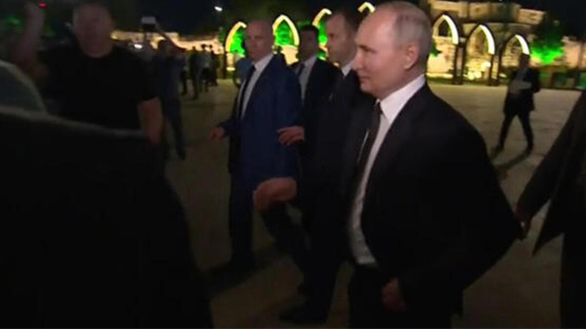 Putin’e Cuma Camii ziyareti sırasında Kuran-ı Kerim ikram edildi. Naryn-Kala Kalesi ve Cuma Camii, üretimi 6’ncı yüzyıla dayanmaktadır ve en eski yapılardan biri olarak kabul edilmektedir.