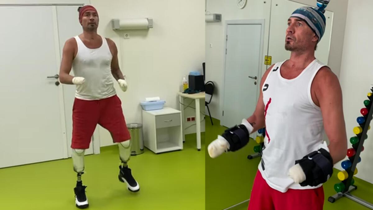 Protez bacaklarıyla ve sargılı elleriyle idman yaparken çekilen görüntü ve fotoğraflarını paylaşıp kendisi için kaygı eden hayranlarının da içini rahatlatmaya çalışıyor ünlü atlet.