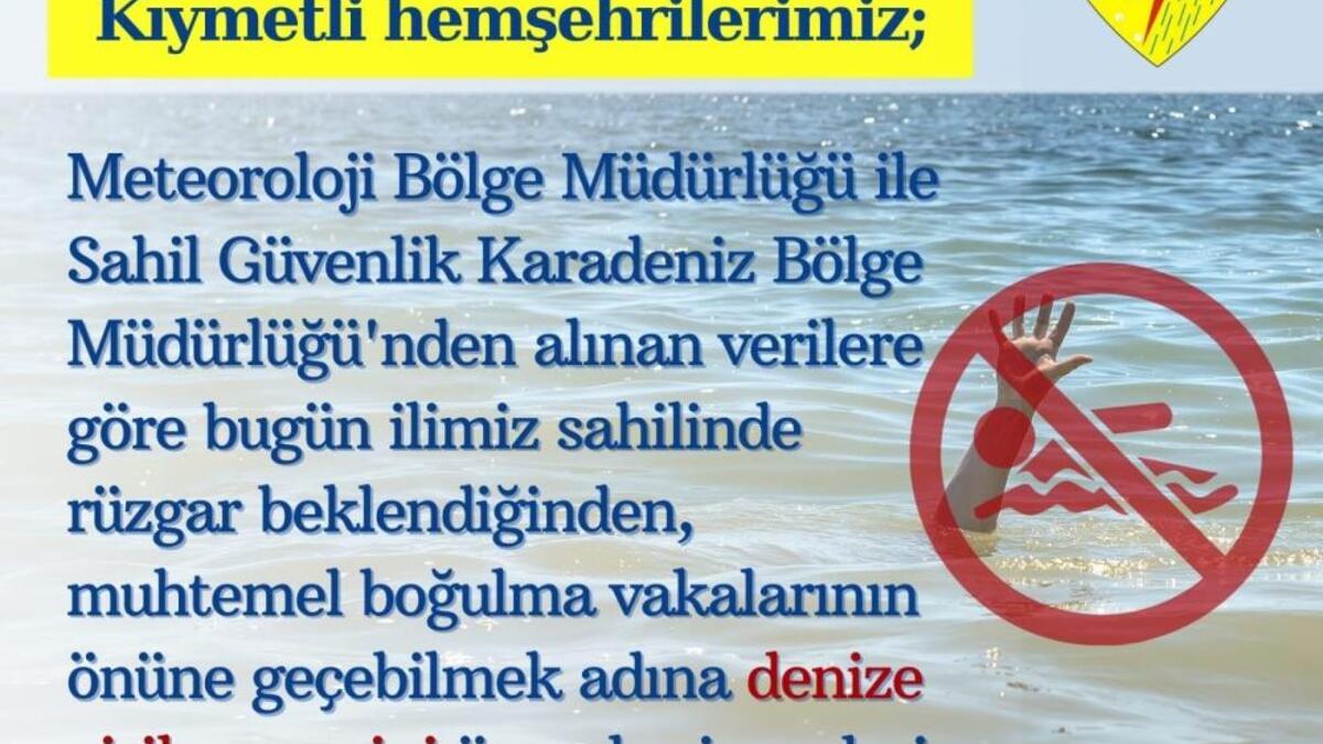 Samsun Valiliği, rüzgarlı hava nedeniyle olası boğulma olaylarına karşı vatandaşları denize girmemeleri konusunda uyardı.Valilikten yapılan açıklama, “Meteoroloji Bölge Müdürlüğü ile Kıyı Güvenlik Karadeniz Bölge Müdürlüğü’nden alınan datalara nazaran bugün ilimiz kıyısında rüzgar beklendiğinden, olası boğulma olaylarının önüne geçebilmek ismine denize girilmemesini kıymetle rica ederiz” denildi.