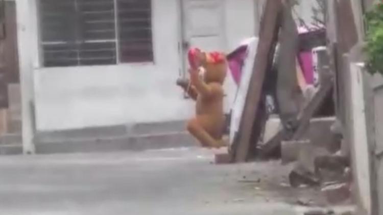 Başkent Lima’da animasyondan sinemasından esinlenen polis memuru, uyuşturucu sattığı belirlenen bayanı yakalamak için ayı kostümü giydi.