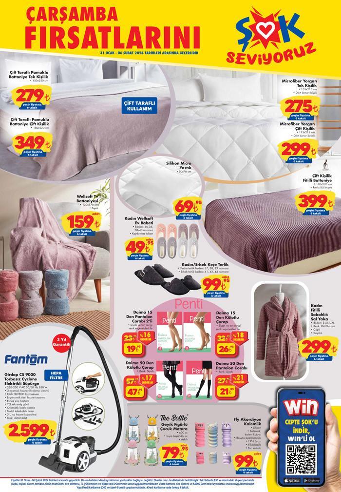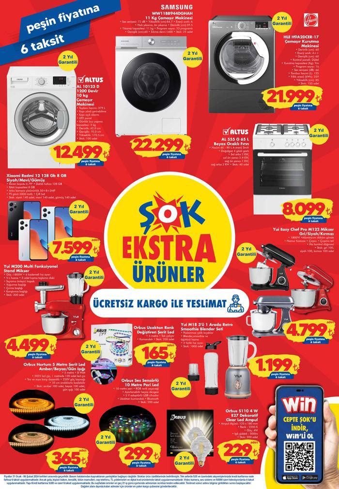 ŞOK’un bu haftaki aktüel eserler kataloğu yayınlandı. ŞOK 31 Ocak – 6 Şubat aktüel eserler kataloğunda tekrar birbirinden farklı fırsatlar sunuluyor. ŞOK’ta bu hafta Torbasız Elektrikli Süpürge 2.599 TL, Bulaşık Sepeti 99,95 TL, Tamir Seti 69,95 TL, Gardırop 3 Kapaklı Aynalı 6.699 TL, Genç Odası Ekibi 3’lü Set 12.599 TL, Beyaz Ocaklı Fırın 8.099 TL, Çamaşır Makinesi 21.999 TL, 3’ü 1 Ortada Retro Smoothie Blender Seti 1.199 TL fiyat ile satışa sunuluyor. İşte ŞOK 31 Ocak – 6 Şubat aktüel eserler kataloğu listesi…
