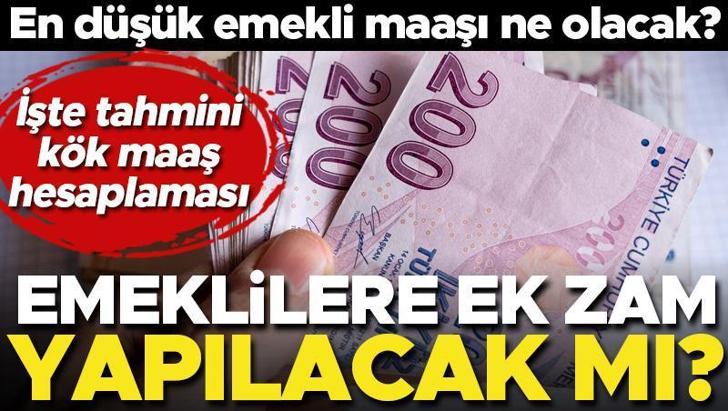 Kök maaşı 5000 lira olan bir emekliye yüzde 50 oranında artırım yapılırsa 2500 liralık artırım farkı doğmuş oluyor. Bunun üzerine yüzde 4 ek ödeme de verilince kök maaş 7800 liraya ulaşıyor. En düşük emekli maaşına yüzde 50 artırım yapılırsa kök maaşı 5 bin lira olan emekli 11 bin 250 lira almış olacak.