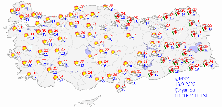 Parçalı ve çok bulutlu, aralıklı ve mahallî olmak üzere sağanak ve gök gürültülü sağanak yağışlı geçeceği iddia ediliyor. Yağışların gece ve sabah saatlerinde yer yer kuvvetli olması bekleniyor.