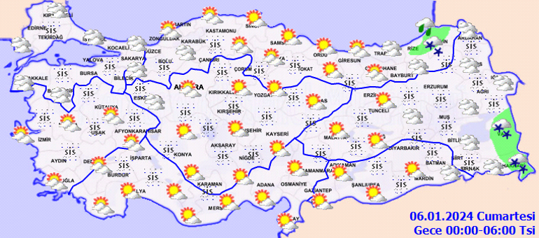 Meteoroloji Genel Müdürlüğü tarafından yapılan son değerlendirmelere nazaran, ülkemiz genelinin kesimli ve çok bulutlu, Doğu Karadeniz geneli, Doğu Anadolu’nun kuzey ve doğusu, Güneydoğu Anadolu’nun doğusu ve Antalya’nın doğusunun yağışlı geçeceği; Doğu Karadeniz’in iç bölümleri ile Doğu Anadolu’nun kuzey ve doğusunda beklenen yağışların karla karışık yağmur ve kar, öbür yerlerde yağmur ve sağanak halinde görüleceği varsayım ediliyor. İç kısımlarda gece ve sabah saatlerinde pus, yer yer sis bekleniyor.