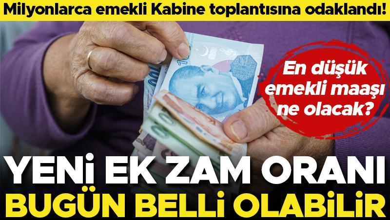 Milyonlarca emekli maaşlarına bugün yapılacak olan Kabine toplantısının akabinde Cumhurbaşkanı Recep Tayyip Erdoğan’ın yapacağı açıklamaya odaklandı. SSK, Bağ-Kur, tarım emeklisi, dul-yetim maaşlarına yapılacak ek artırımı merak ediyor.