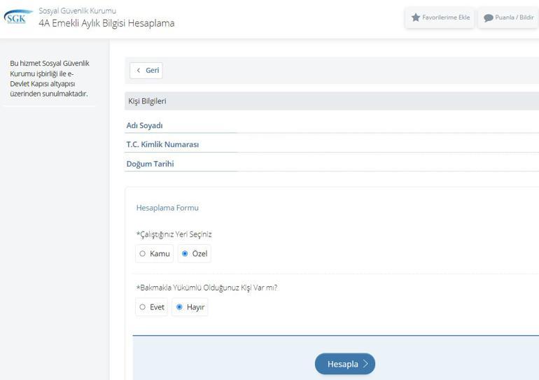 Olası emekli maaşını öğrenmek isteyenler yalnızca birkaç saniye içinde ne kadar emekli maaşı alacağını öğrenebiliyor.