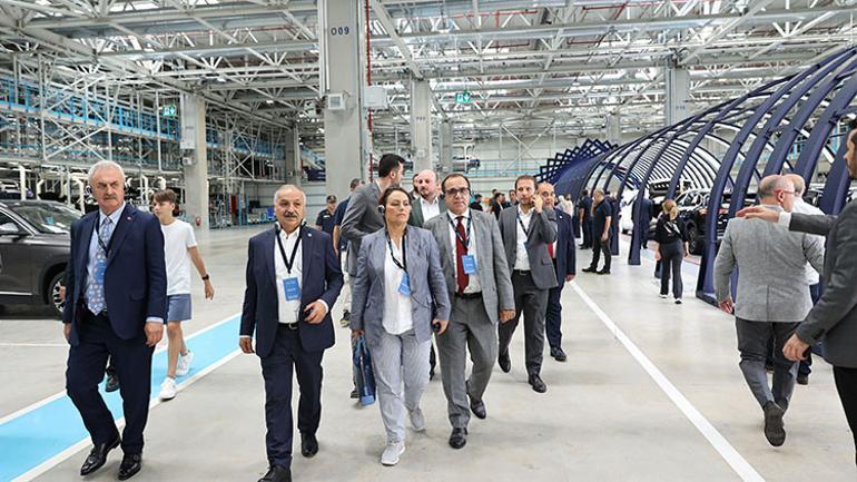 Togg Teknoloji Kampüsü’ndeki gövde, boya, montaj ve batarya olmam üzere dört farklı kısımda üretim basamakları hakkında bilgi alan heyete, Togg CEO’su Karakaş, mobilite ekosistemi, teknolojideki gelişmeler ve vizyonu içeren bir sunum yaptı.