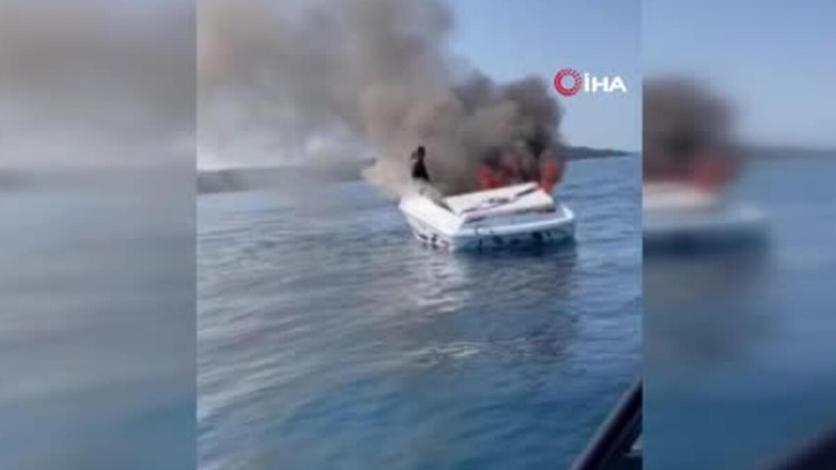 Yanan teknede kalan çift yangını söndürmeye çalışsa da başarılı olamadı.