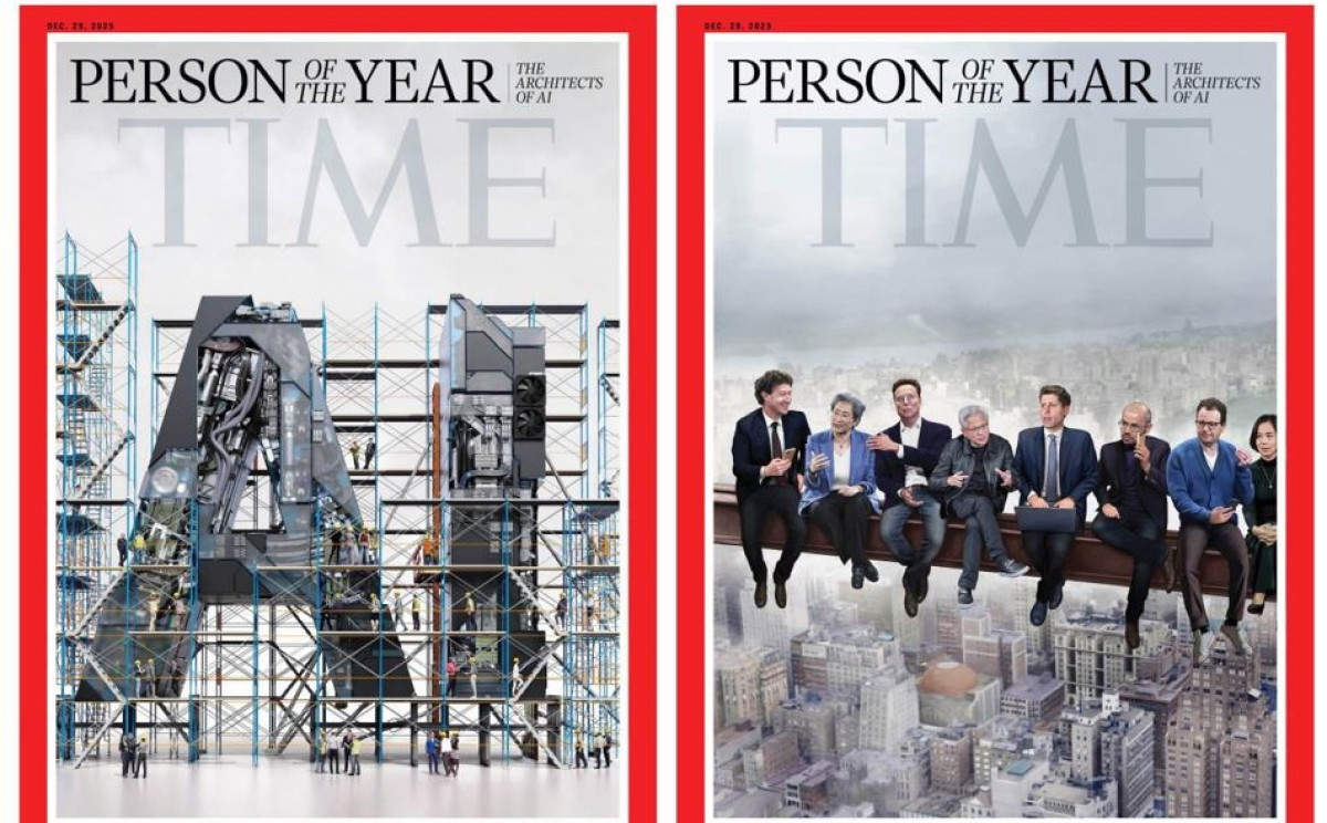 Charles Clyde Ebbets tarafından 1932’de çekilmiş ünlü “Lunch atop a Skyscraper” fotoğrafından esinlenilen birinci kapakta sırasıyla Zuckerberg, Advanced Micro Devices (AMD) CEO’su Lisa Su, Musk, Huang, OpenAI CEO’su Sam Altman, DeepMind Technologies şirketinin CEO’su Demis Hassabis, Anthropic yapay zeka şirketinin CEO’su Dario Amodei ve yapay zeka alanındaki öncü çalışmalarıyla “yapay zekanın vaftiz annesi” olarak tanınan Fei-Fei Li yer aldı.