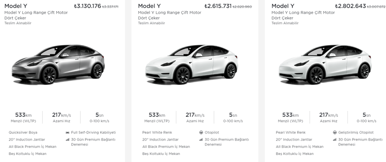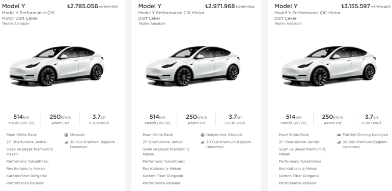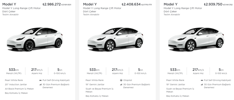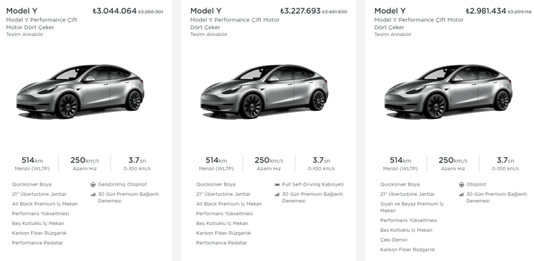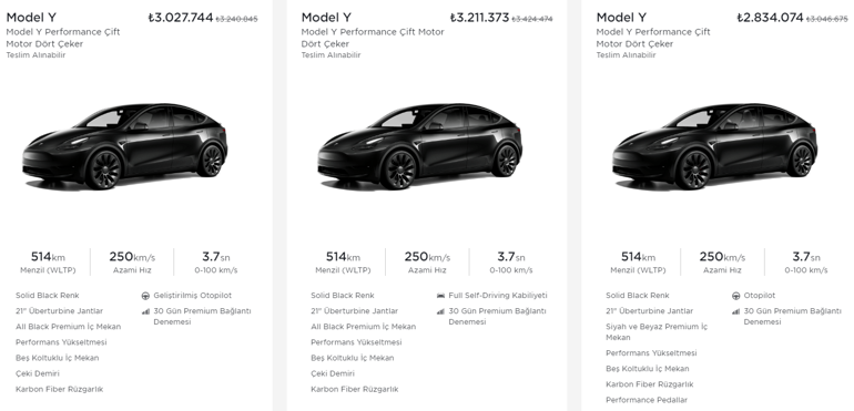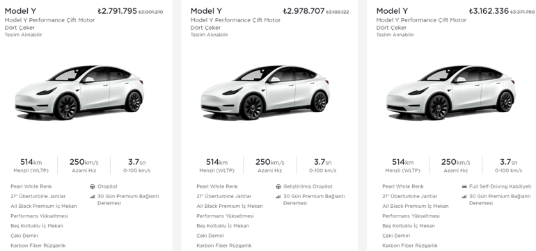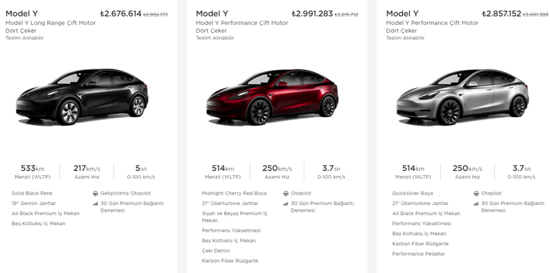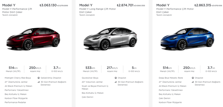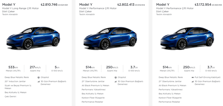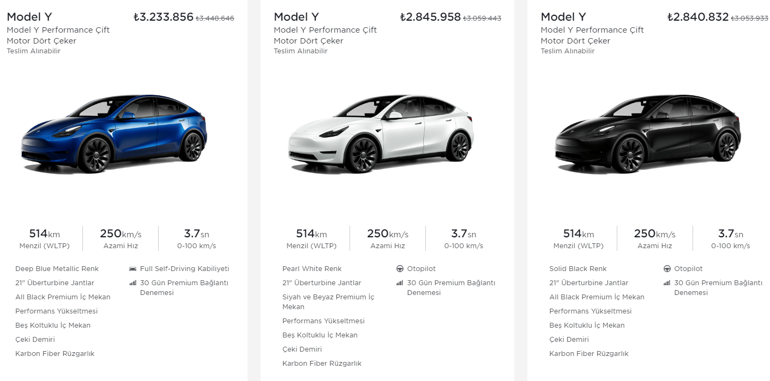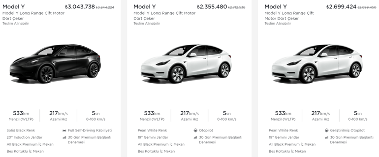 Yapılan indirimler 400 bin liralara vardı. Model Y’nin donanım özelliklerine nazaran farklı fiyatlar ortaya çıkmış oldu.