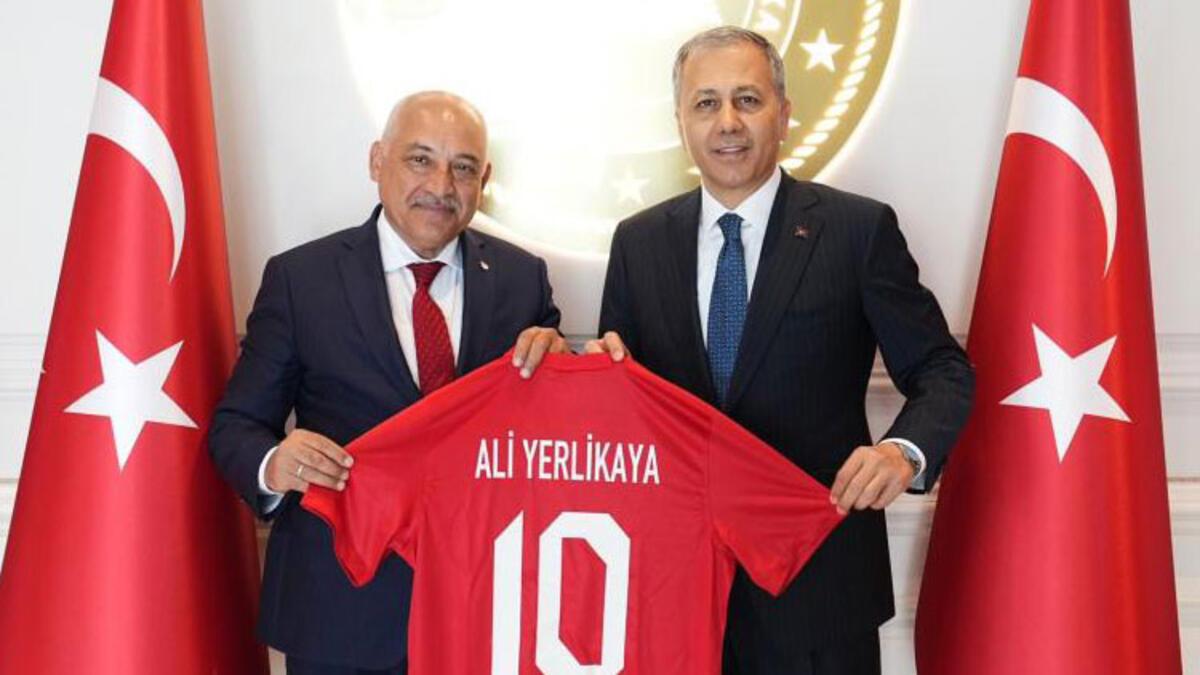 Türkiye Futbol Federasyonu’ndan (TFF) yapılan açıklamada, “TFF Lideri Mehmet Büyükekşi ve İdare Konseyi Üyeleri, Türkiye Cumhuriyeti İçişleri Bakanı Ali Yerlikaya’ya iyi olsun ziyaretinde bulunarak, Türk futboluna katkı sağlayabilecek projeler hakkında fikir alışverişinde bulundu” tabirlerine yer verildi.