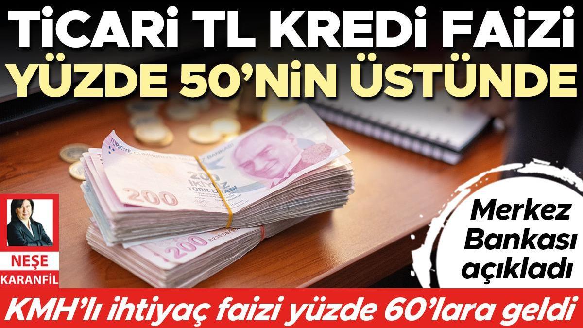 TİCARİ Türk Lirası (TL) kredi faizi 3 Kasım haftasında yüzde 50’nin üzerine çıktı. Siyaset faizinin artırılması öncelikle kredi kartı faizleri ve ticari TL kredi faizlerini etkiliyor. Eylül ayının birinci haftalarında yüzde 40’lar seviyesinde olan ticari TL kredilerin ortalama faizi eylül ayının sonlarında yüzde 45, ekim ayının birinci haftalarında ise yüzde 49’lara gelmişti. 27 Ekim haftasında yüzde 48.72 olan ortalama faiz, 3 Kasım haftasında yüzde 51.14 oldu.