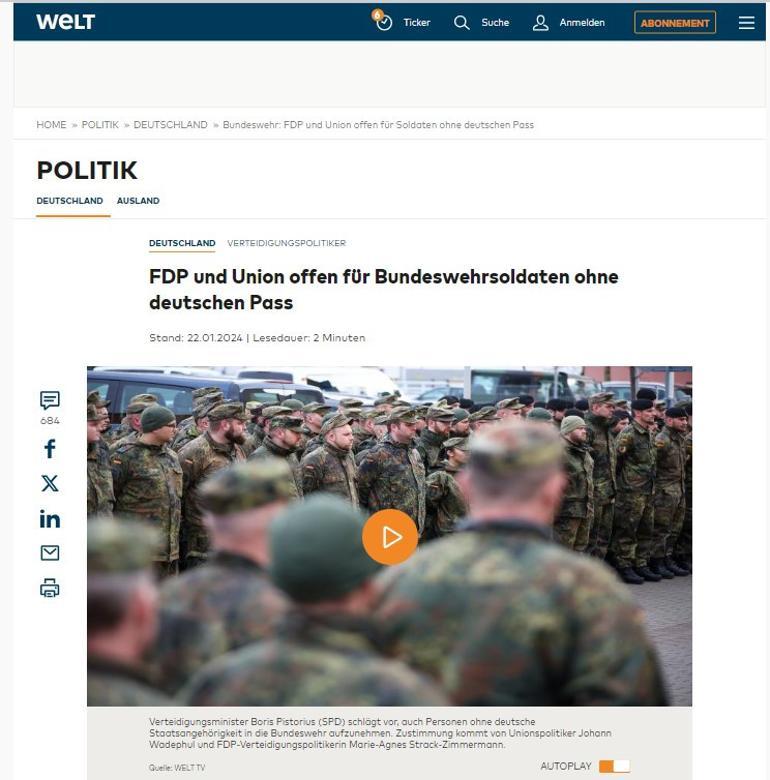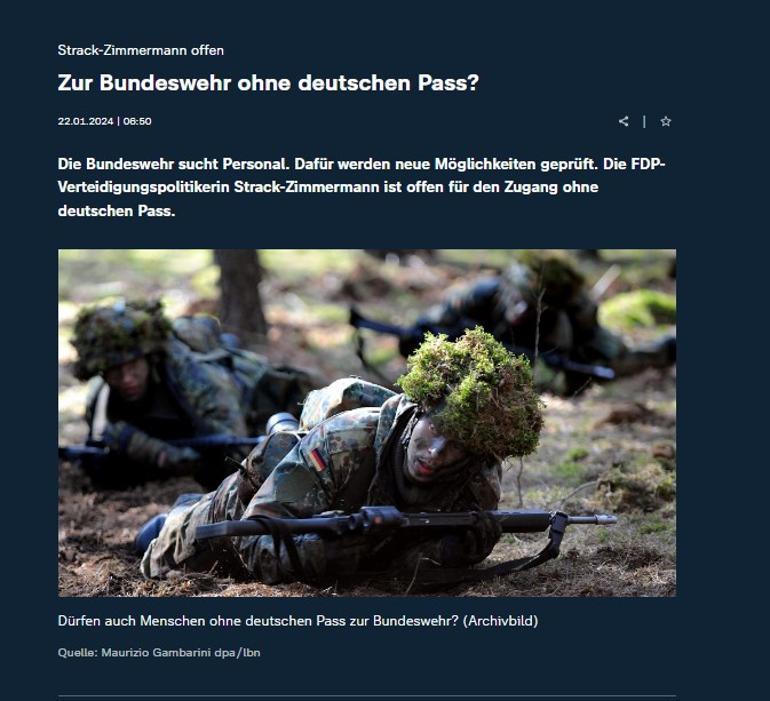 Alman Bild gazetesi bugün bahse ait ayrıntılı tahlilinde “Çok az Alman askere gittiği için bu işi artık yabancıların yapması planlanıyor” dedi ve örnek rol modelleri okuyucuları ile paylaştı.