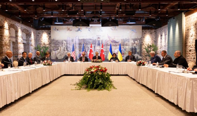 Dışişleri Bakanlığı kaynaklarından edinilen bilgiye göre, Türk, Amerikalı ve Ukraynalı heyetler, Dışişleri Bakanı Hakan Fidan’ın başkanlığında İstanbul’daki Cumhurbaşkanlığı Dolmabahçe Çalışma Ofisi’nde bir araya geldi.