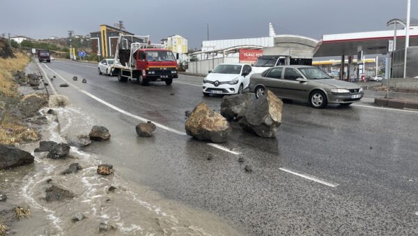 Kent merkezinden Çorum istikameti Sungurlu Kavşağı yakınında ise yamaçtan koparak yola düşen kaya parçaları trafiği aksattı.