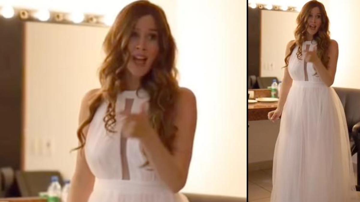 Söylediğine nazaran o gün için özel bir gelinlik satın almadı. Bunun yerine yıllardır dolabında asılı duran beyaz bir elbiseyi giydi.