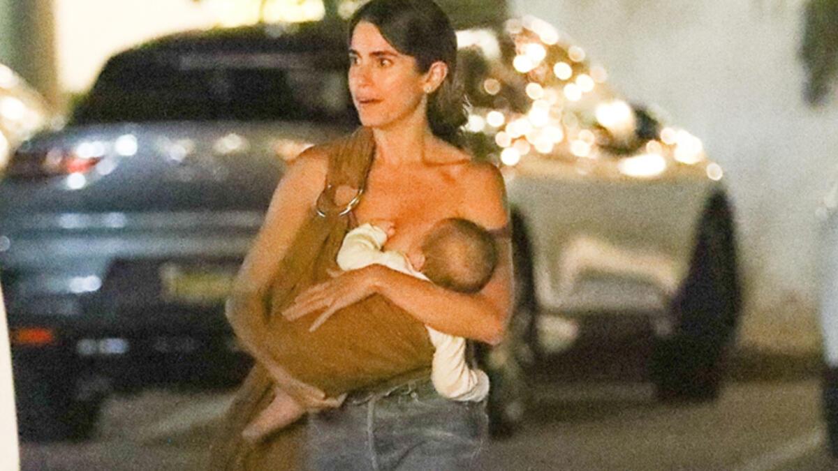 Bebek annesinin göğsünde rahat bir pozisyonda bulunduğundan Nikki Reed araçlarına yanlışsız yürürken de bebeği emzirmeye devam etti.