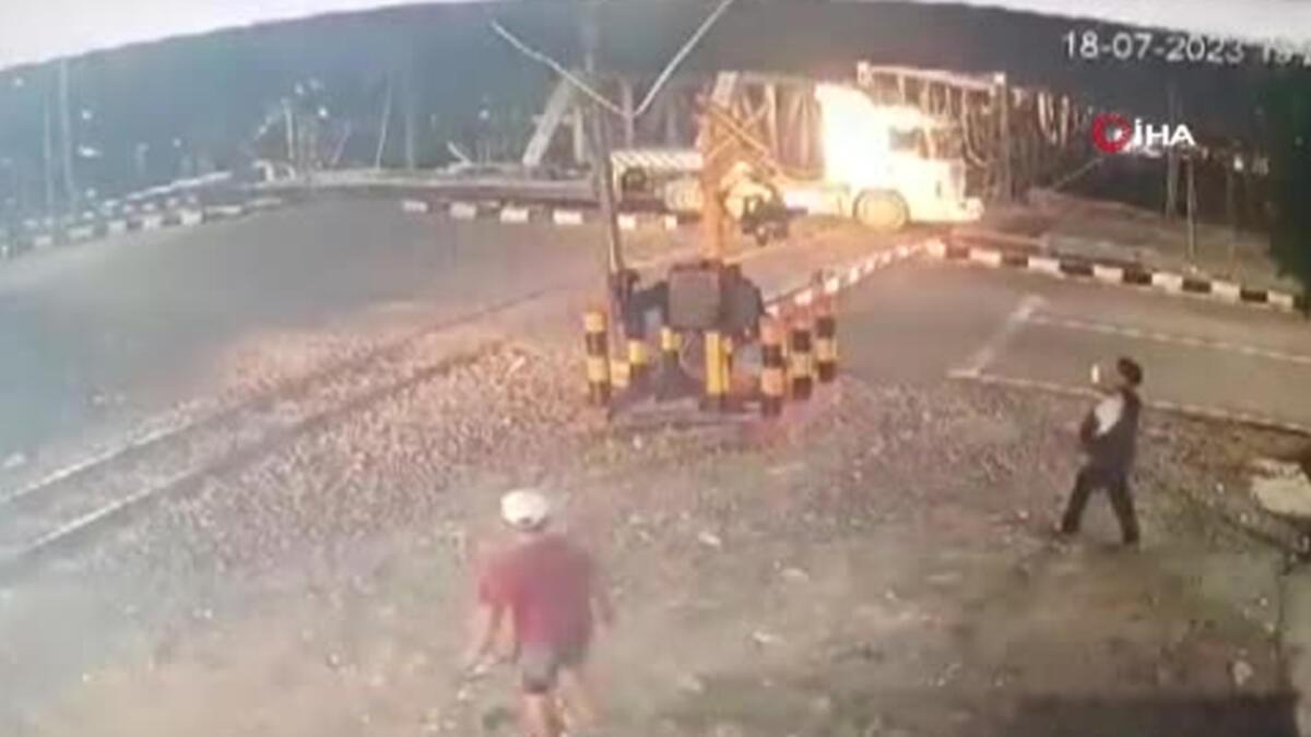 Olay yerindeki güvenlik kameralarına yansıyan manzaralarda, tren gelmeden çabucak evvel hemzemin geçitten yolun karşısına geçmekte olan tırın yola sıkıştığı ve şoförün aracı hareket ettirmek için bir müddet çabaladığı, ancak daha sonra geç kaldığını fark ederek koşarak olay yerinden uzaklaştığı görüldü.
