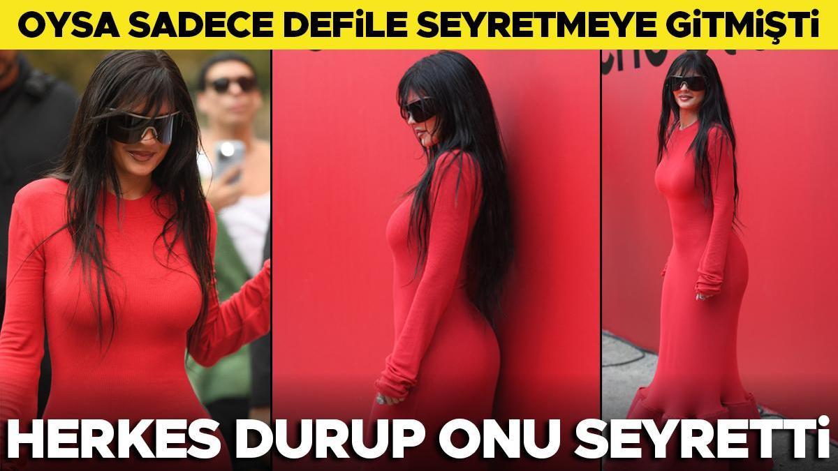 Nereye giderse gitsin bütün ilgiyi üzerinde toplayan Kylie Jenner bu sefer de geleneğini bozmadı. Vücudunu saran kırmızı elbisesiyle defilede podyuma çıkan modellerden bile daha fazla dikkat çekti.