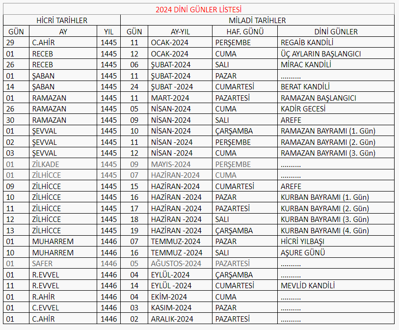 KANDİLİ TARİHLERİ 2024
