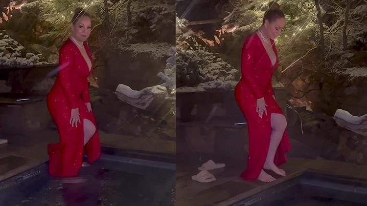 Üzerindeki değer biçilmez giysiye ve mücevherlere aldırmayan Mariah Carey, saçlarını topladığı üzere bir anda kendini sulara bıraktı. Yılbaşı kutladıkları lüks yerin harika bahçesinde bulunan ve sıcak suyla ısıtılmış havuza giren Mariah Carey, buz üzere havadan sıcak suya girerek kaçtı ve hayranlarının yeni yılını da bu türlü kutladı.