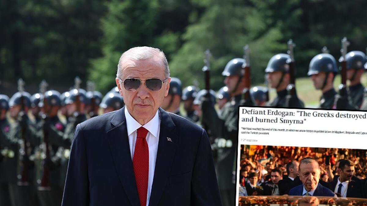 ‘Küstah Erdoğan: Yunanlılar İzmir’i yerle bir etti, yaktı’ manşetini atan Yunan gazete haberinde şu sözlere yer verdi;