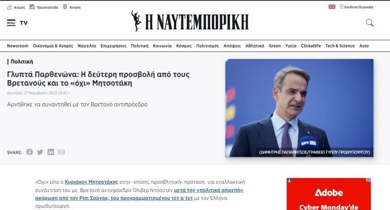 İngiltere Başbakanı Rishi Sunak, Miçotakis ile yapacağı görüşmeyi Elgin Mermerleri tartışması nedeniyle son anda iptal etti.