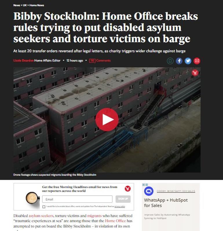 The Independent gazetesi, İçişleri Bakanlığı’nın kendi kurallarını ihlal ederek yüzen hapishaneye nakli için talimat verdiği göçmenler arasında denizde travmatik tecrübeler yaşayan, su fobisi olan, azap geçmişi olan mağdurların yer aldığını yazdı.